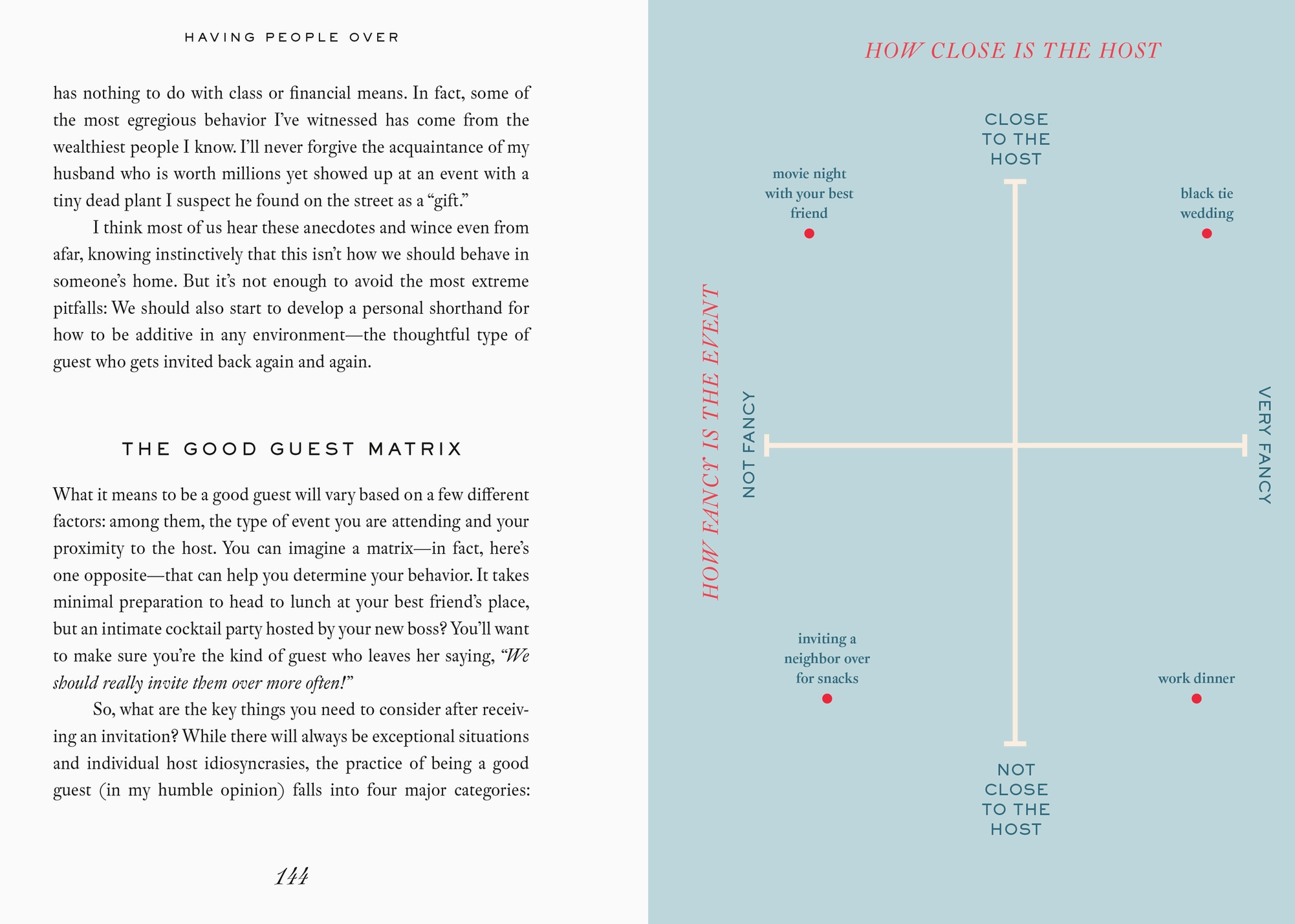 • How to be good guest wherever you go, from when to show up, to what to bring, to what absolutely not to do.