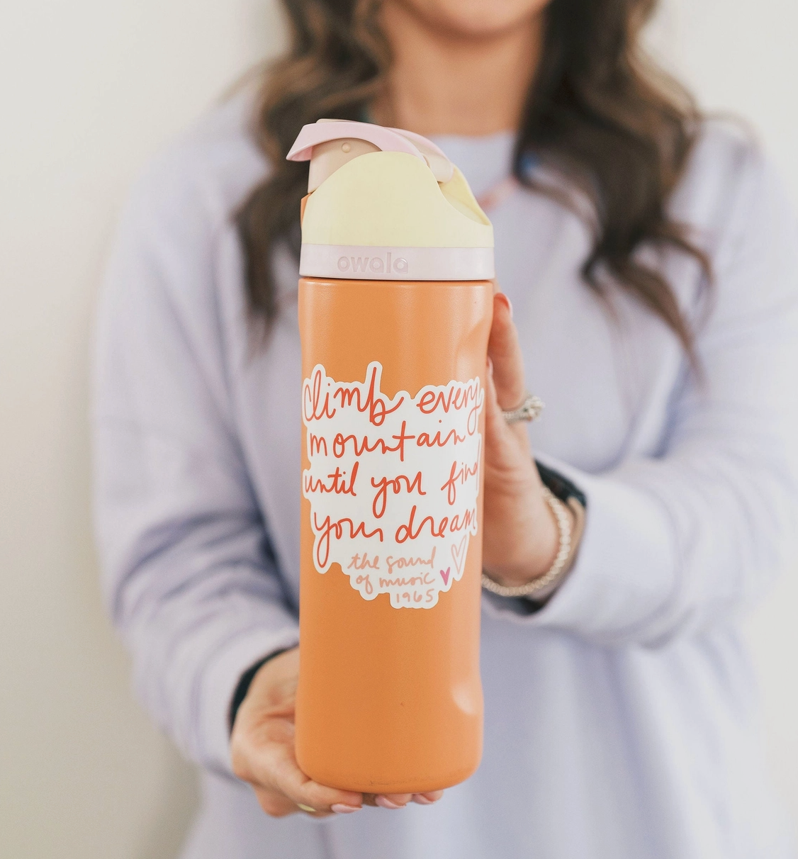 A beautiful keepsake for The Sound of Music lovers—let this limited edition sticker inspire your journey, one step at a time. Commemorating the beloved 1965 film and its uplifting legacy, this sticker, features the iconic lyrics "Climb every mountain until you find your dream" in a charming hand-lettered design. A tribute to the film’s timeless message of perseverance and hope, this sticker is perfect for dreamers, adventurers, and musical fans alike. Vinyl Sticker This sticker is roughly 4x4" Perfect for laptops, water bottles and notebooks
