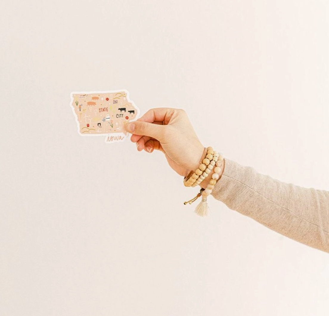 If you were born and raised in Iowa like I was, or maybe you’ve recently found this state to be your new home, then you’ll adore this vinyl Iowa Sticker. It highlights all of the beauty that makes this state great. Wear your state loud and proud with this cute Iowa Sticker on notebooks, tumblers/water bottles, your laptop, car and so many other fun places!