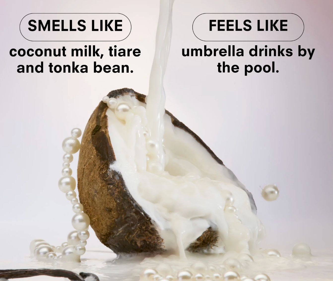 Coco Cream is a dreamy blend of coconut milk, vanilla, white florals, warm musk and tonka bean—rounded out with a hint of pineapple. It’s smooth, effortless and just the right amount of escape—like a golden hour sunset in scent form.
